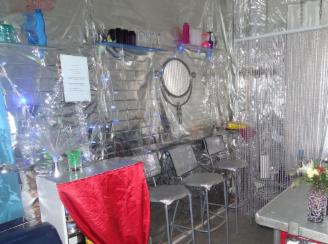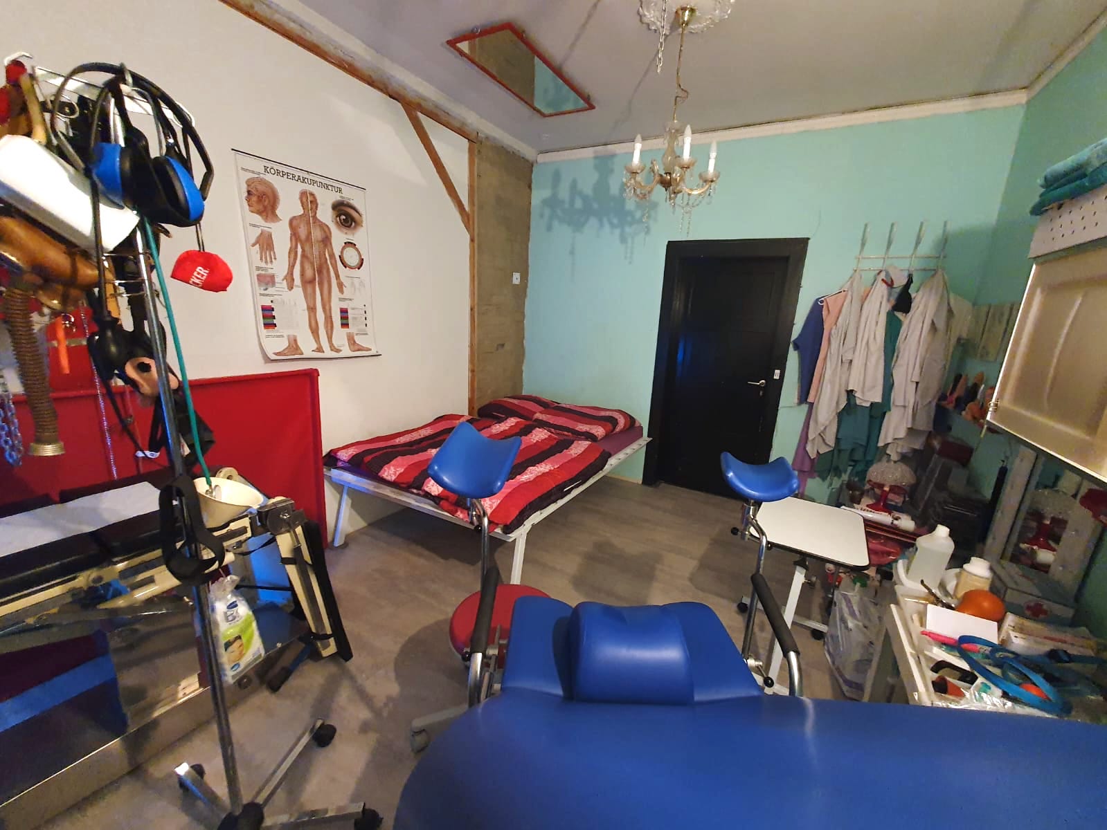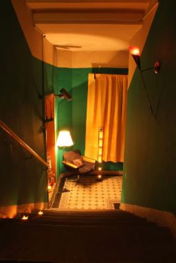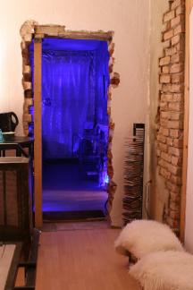 Über 2 floors verteilt findet man eine Klinik und 3 Schwarze Bereiche, ein Verließ, Loch, Bar, 2 Bäder. Das Konzept ist einfach: Man mietet das Apartment im OG allein oder mit Keller: